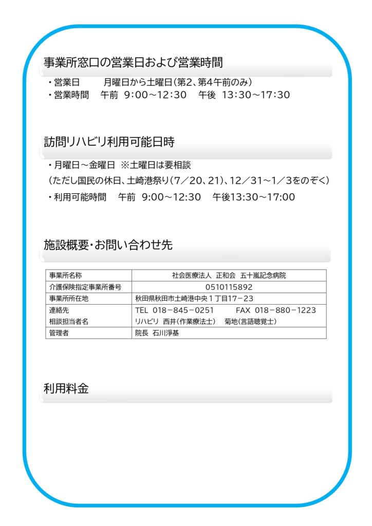 利用料金についてはページ下部の別紙料金表をご確認ください