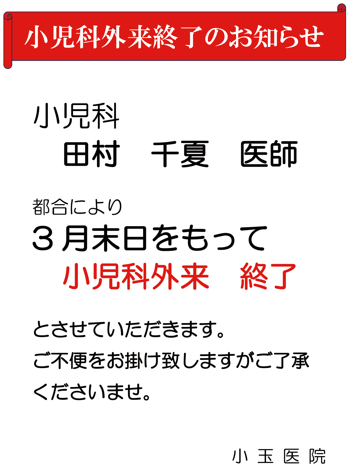 小児科外来終了について